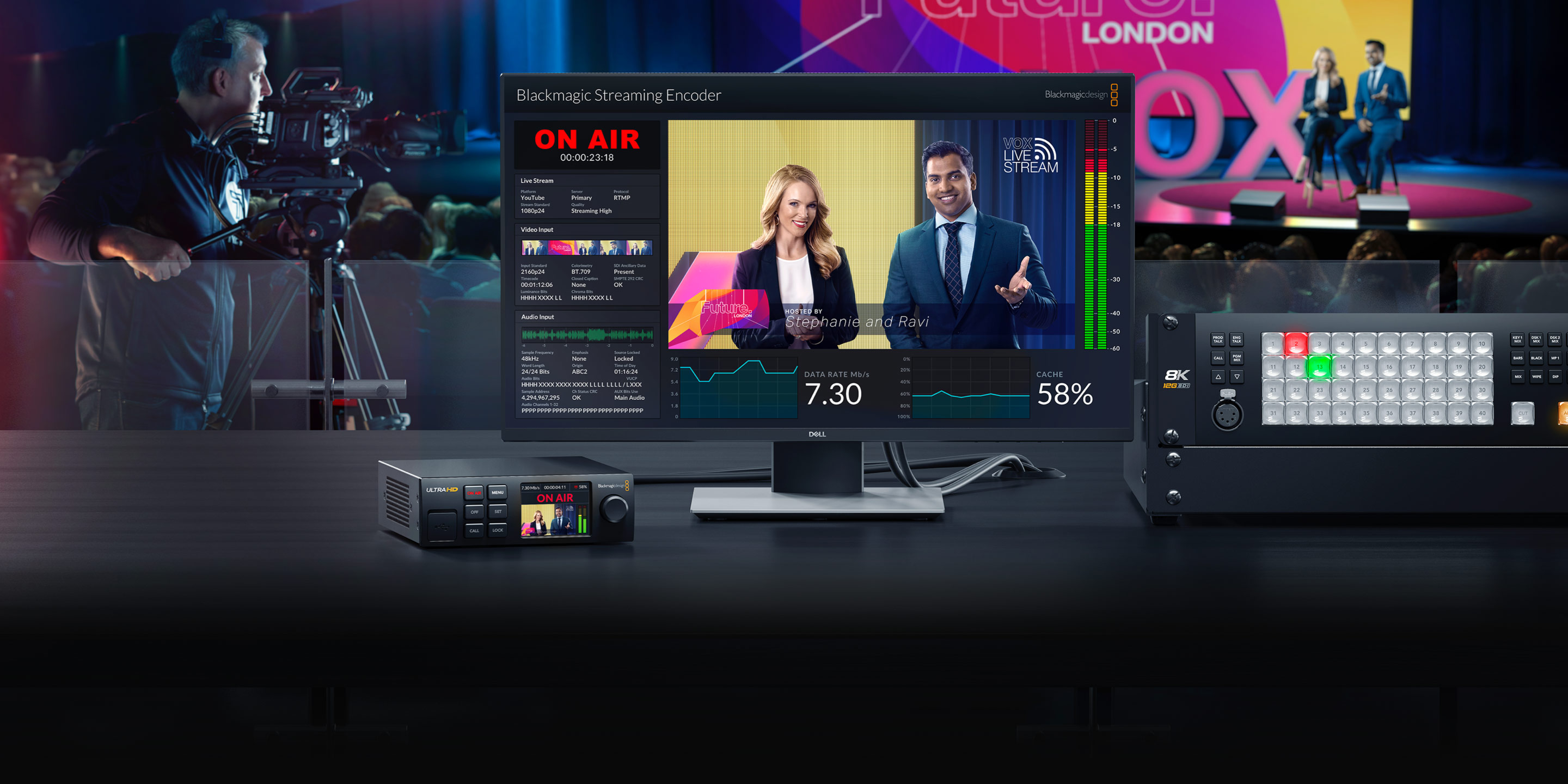 Blackmagic Streaming Decoder, một bộ xử lý truyền phát mới giải mã các luồng H.264 và H.265 trực tiếp từ bộ mã hóa hoặc máy quay và chuyển đổi chúng sang SDI hoặc HDMI với talkback, tally và điều khiển máy quay. Ngoài ra, tên của Blackmagic Web Presenter sẽ được đổi thành Blackmagic Streaming Encoder để cả hai mẫu đều dễ hiểu hơn và có một bộ sản phẩm bộ mã hóa và bộ giải mã truyền phát phù hợp. Cùng với nhau, hai sản phẩm này cho phép các đài truyền hình xây dựng các liên kết video chất lượng cao trên toàn thế giới với chất lượng phát sóng thực sự ở độ phân giải HD và Ultra HD.