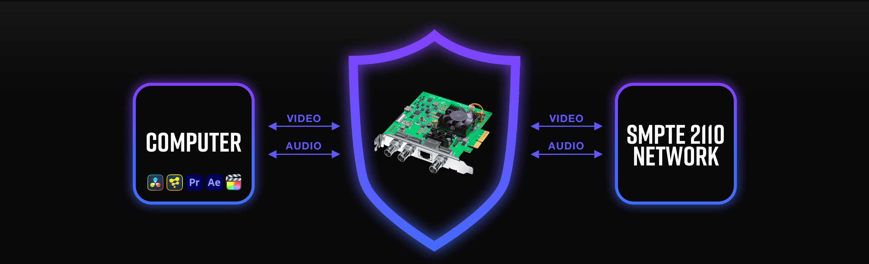 Các card DeckLink IP là cách dễ nhất để thu và phát lại video trực tiếp vào các hệ thống phát sóng dựa trên IP 2110. Chúng có các tính năng DeckLink tương tự nên phần mềm hiện tại vẫn hoạt động. DeckLink IP hỗ trợ nhiều kênh video và mỗi kênh có thể thu và phát lại cùng lúc. Điều này có nghĩa là khách hàng có thể xây dựng các rack server tạo đồ họa phát sóng, các bộ cảnh ảo hoặc xử lý hình ảnh AI dựa trên GPU, tất cả đều được tích hợp trực tiếp vào cơ sở hạ tầng phát sóng IP 2110. Khách hàng thậm chí có thể sử dụng DaVinci Resolve cho các trạm làm việc chỉnh sửa phát sóng dựa trên IP 2110. DeckLink IP sở hữu kết nối PCIe tốc độ cao nên hoạt động trên các máy Mac Pro, Windows và Linux mới nhất.